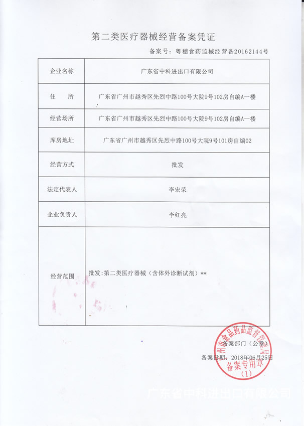 • 第二類醫(yī)療器械經(jīng)營備案憑證